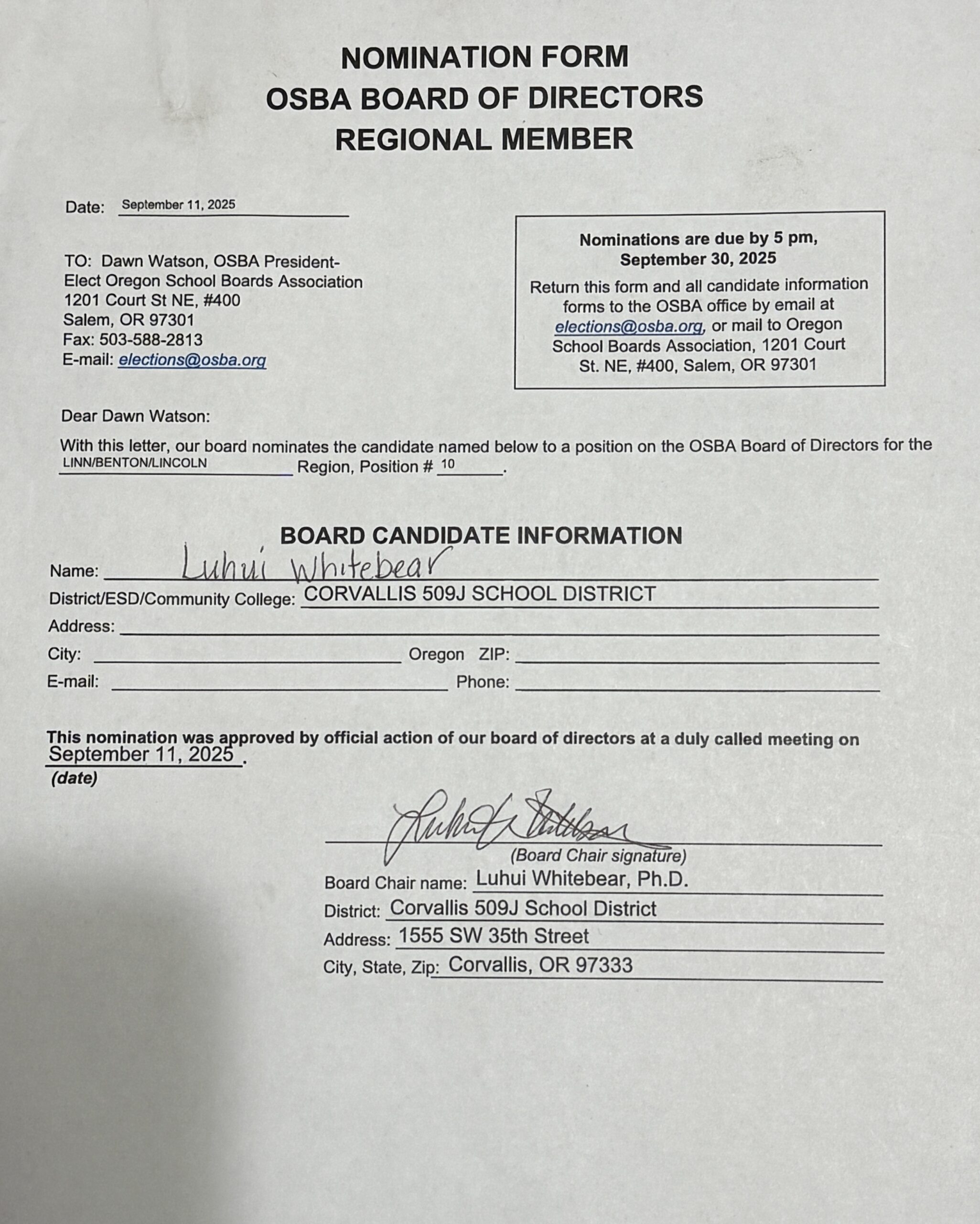 Position 10, Linn/Benton/Lincoln Region Clyde Rood - Candidate Questionnaire and Resume Luhui Whitebear - Candidate Questionnaire and Resume |
